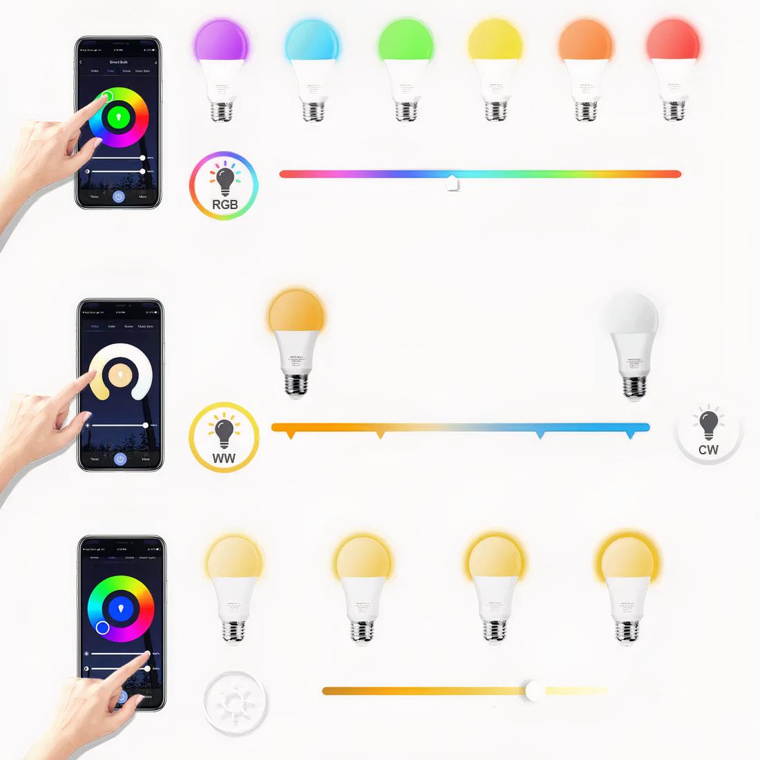 Notre ampoule lampe de chevet intelligente vous offre une palette de couleurs infinie pour créer l'ambiance parfaite. Du doux blanc chaud pour vos soirées relaxantes aux teintes vibrantes pour vos fêtes, chaque couleur est ajustable pour s'adapter à votre humeur.