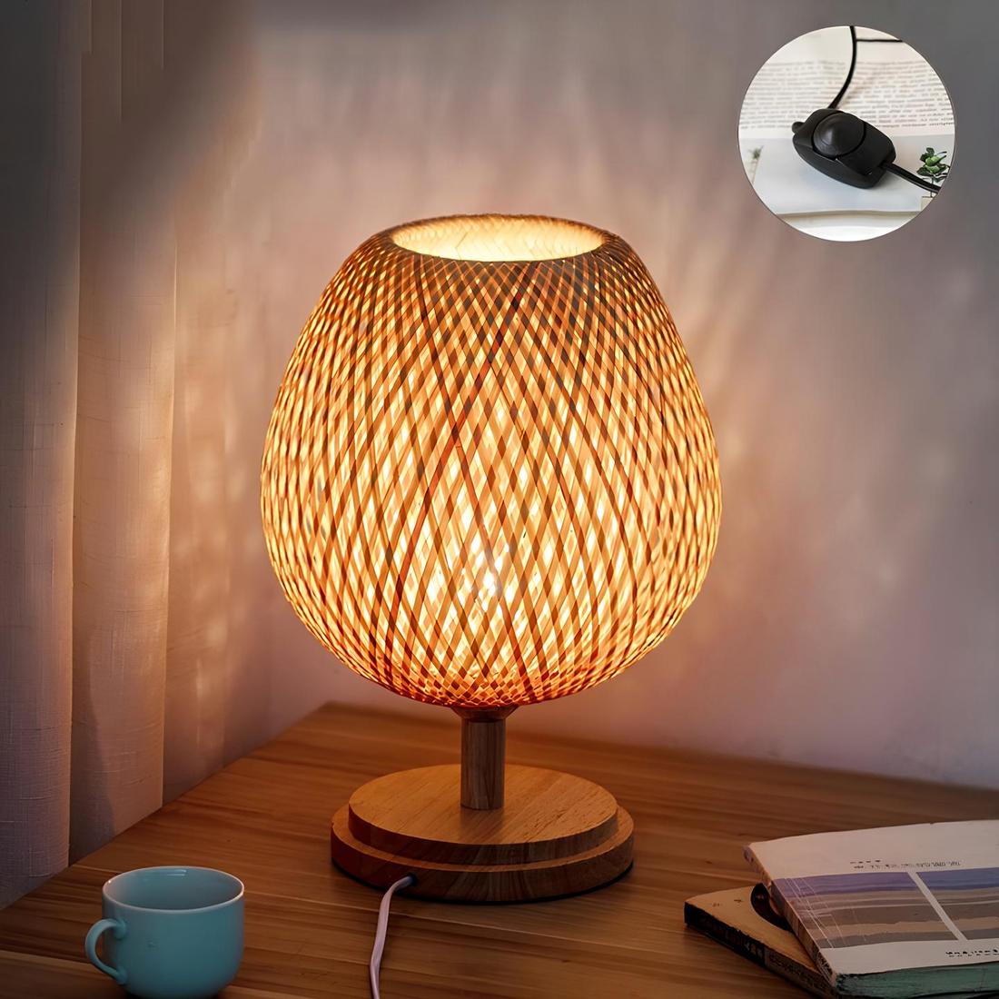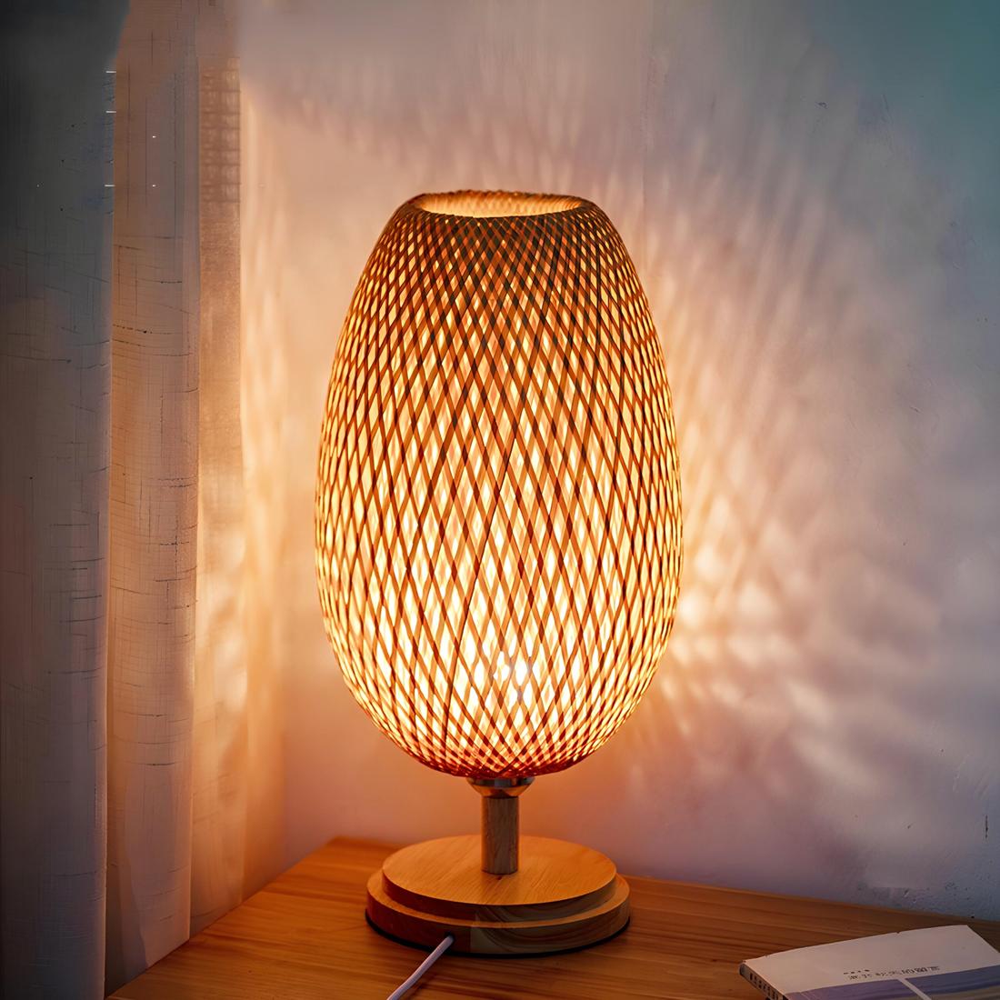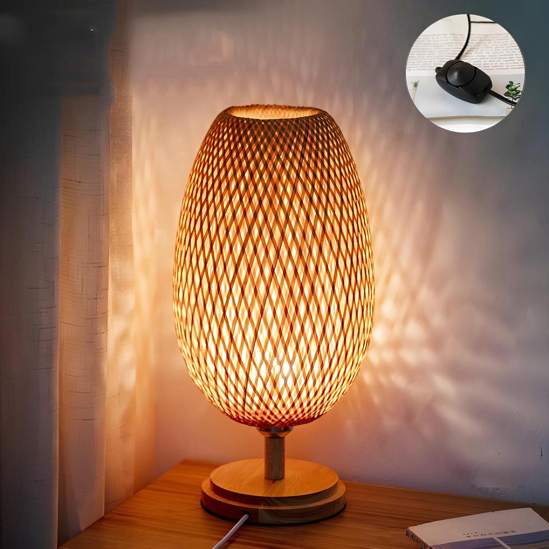Lampe de chevet en bambou sur socle en bois