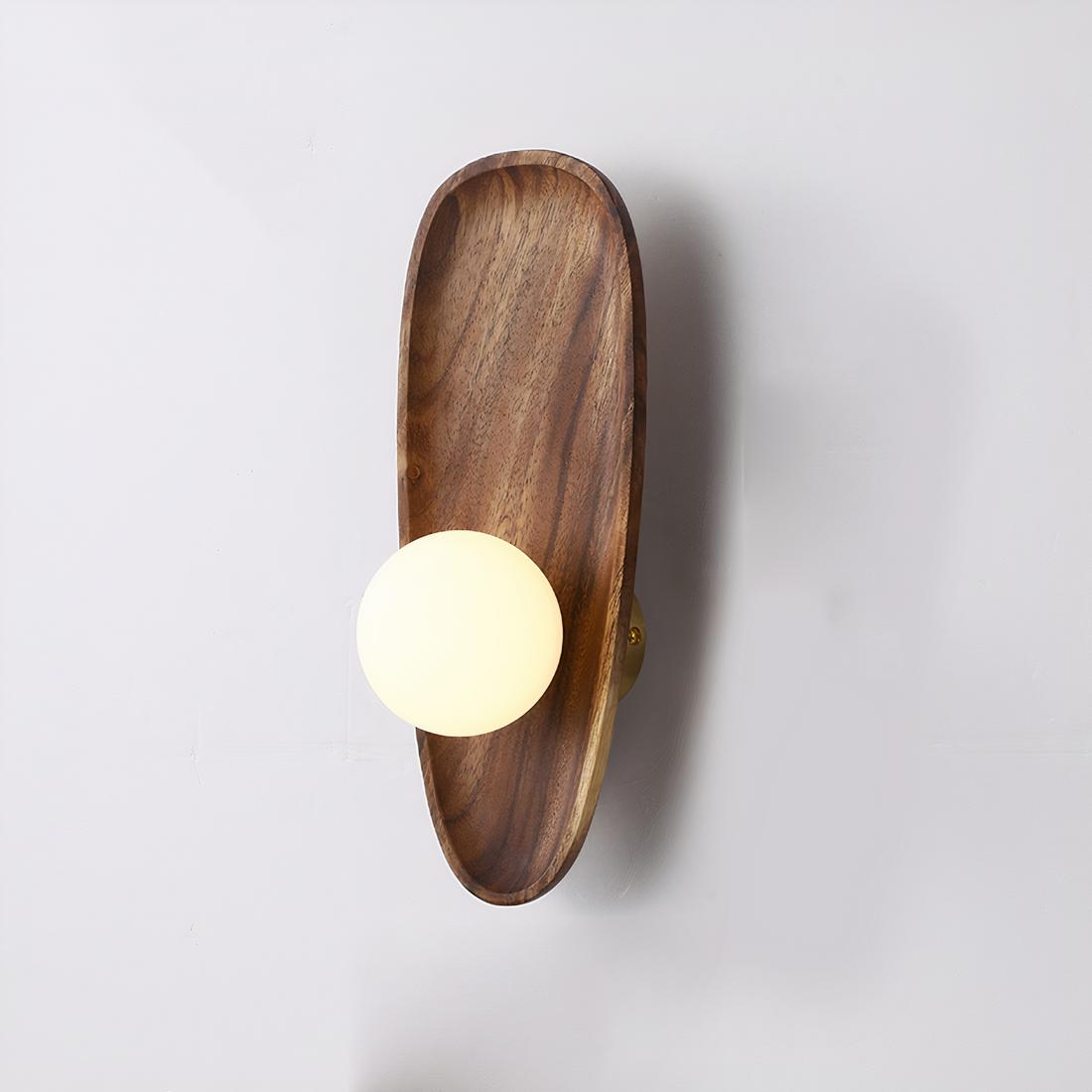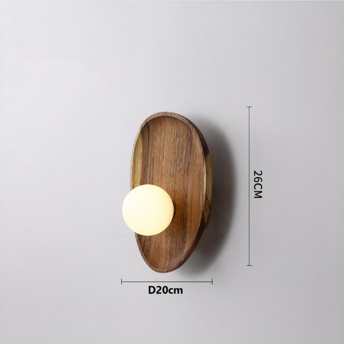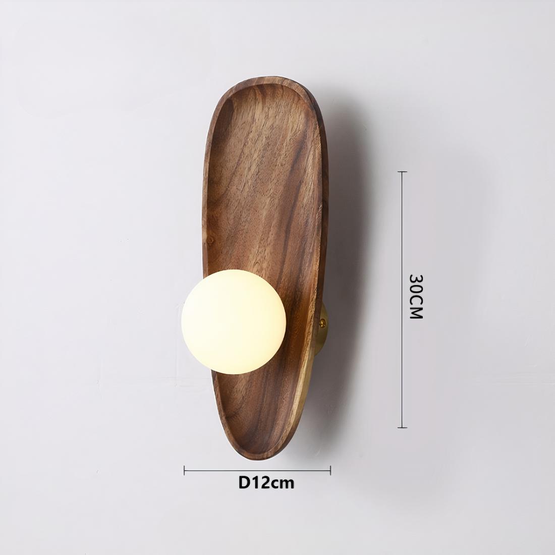 Lampe de chevet murale en bois avec boule lumineuse