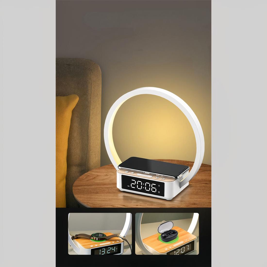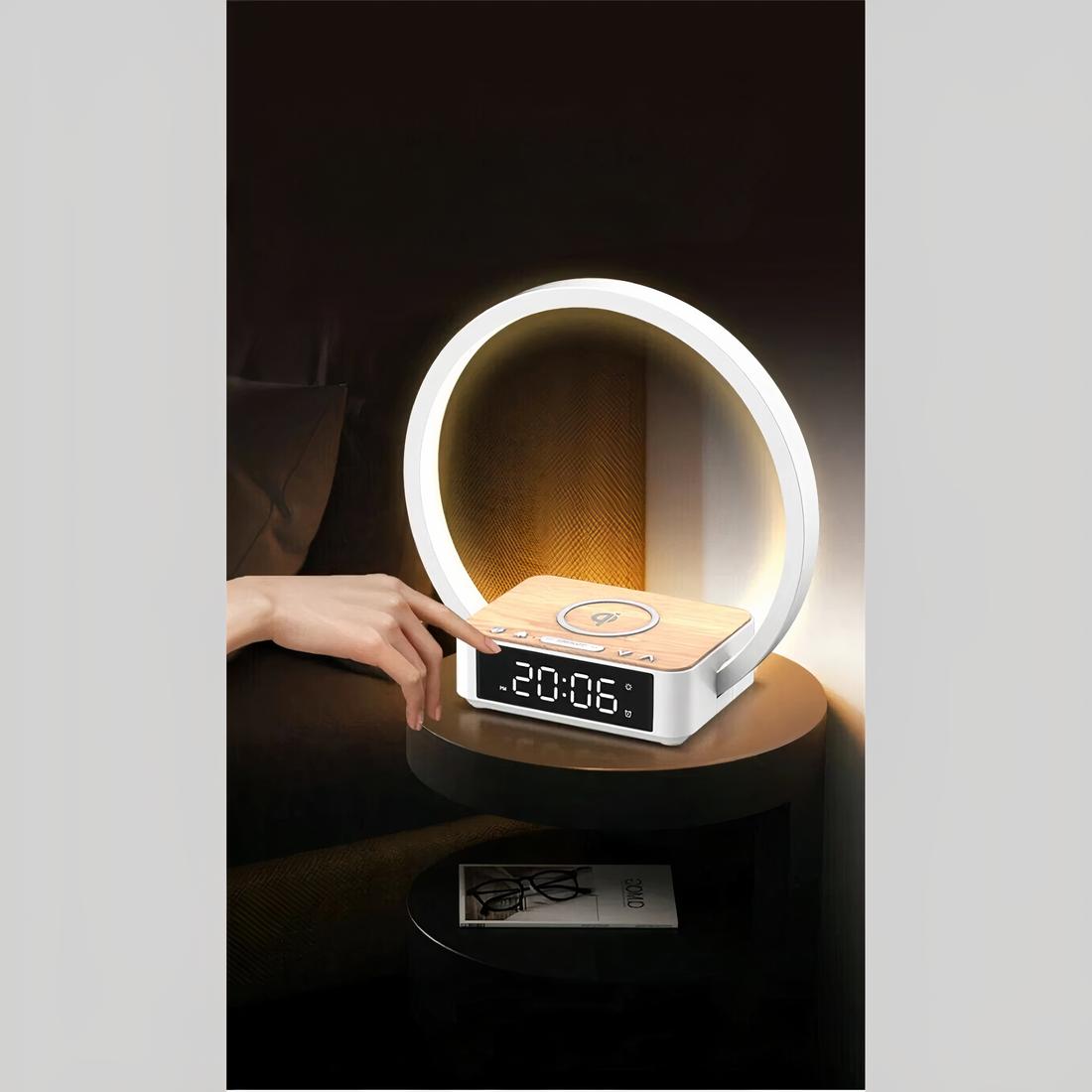 Le réveil intégré ajoute une fonctionnalité supplémentaire à cette lampe de chevet, offrant la possibilité de programmer un réveil en douceur grâce à la lumière douce émise par son cercle lumineux.