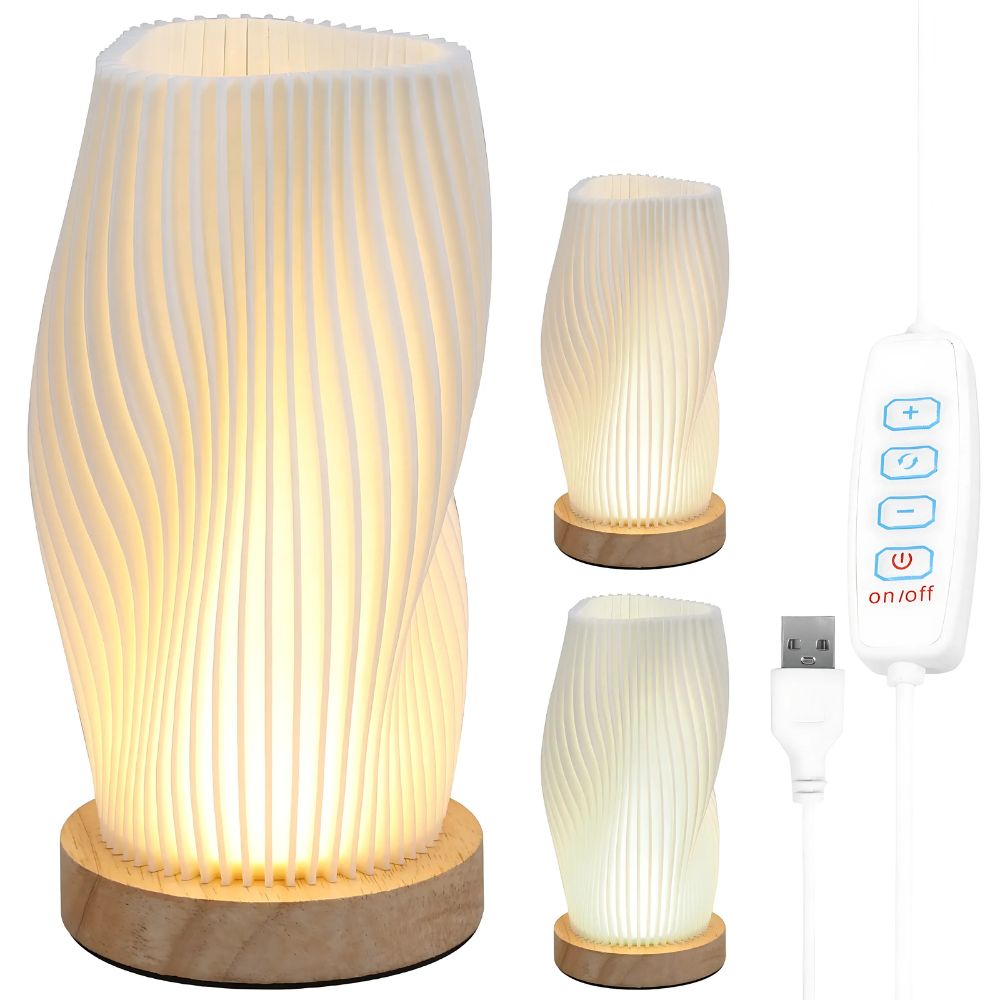 Avec son design sculptural inspiré des formes organiques, cette lampe est une véritable œuvre d’art lumineuse. Sa base en bois naturel et son diffuseur ondulé lui confèrent une esthétique intemporelle, parfaite pour apporter une ambiance cosy et sophistiquée à votre intérieur.