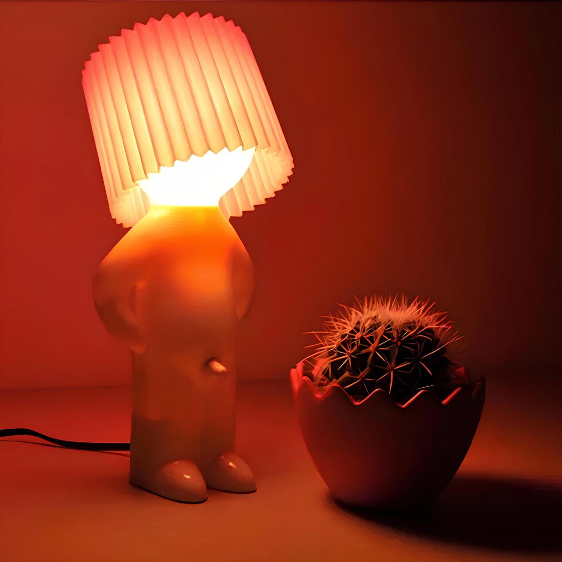 Cette lampe de chevet en forme de bonhomme est un véritable objet de décoration original qui apportera une touche ludique et amusante à votre chambre. Son design en forme de bonhomme nu avec une tête lumineuse et un abat-jour coloré autour de celle-ci ne manquera pas de surprendre vos invités.