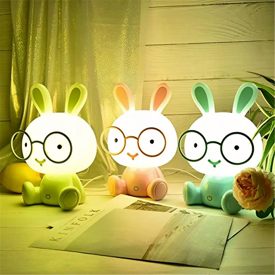 Lampe kawaii tactile en forme de lapin à lunettes