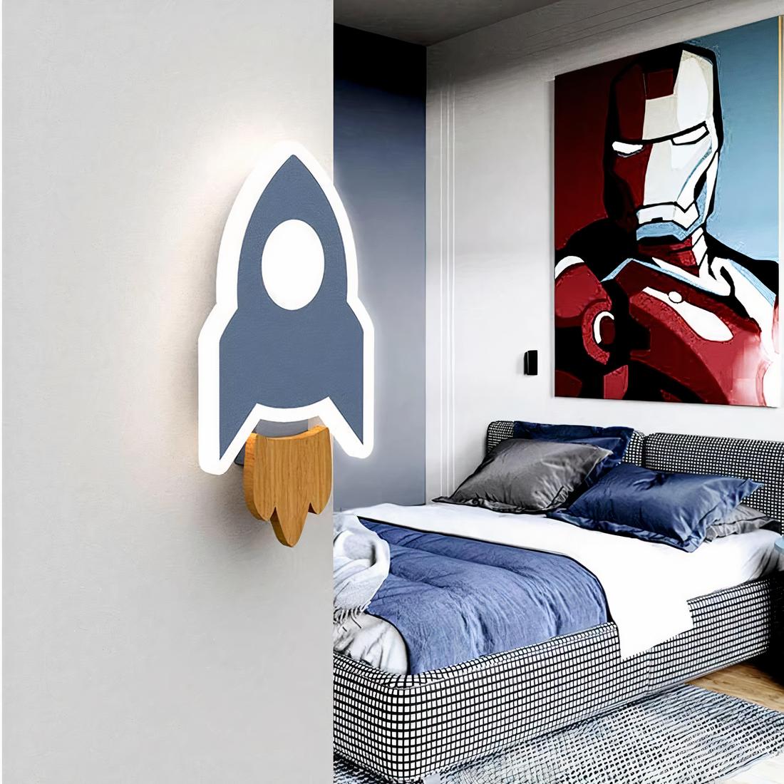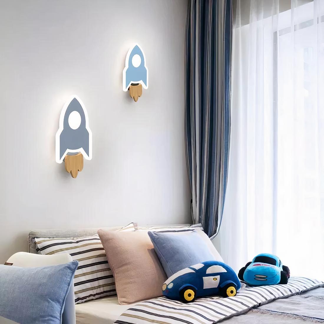 Au-dessus du lit de votre explorateur céleste, laissez flotter une lumière magique. Imaginez une fusée bleue, prête à s'envoler vers des mondes inexplorés, illuminant le chemin vers l'infini. Cette lampe de chevet murale, tel un engin venu d'un autre univers, baigne la chambre de votre enfant d'une lueur céleste, douce et apaisante.