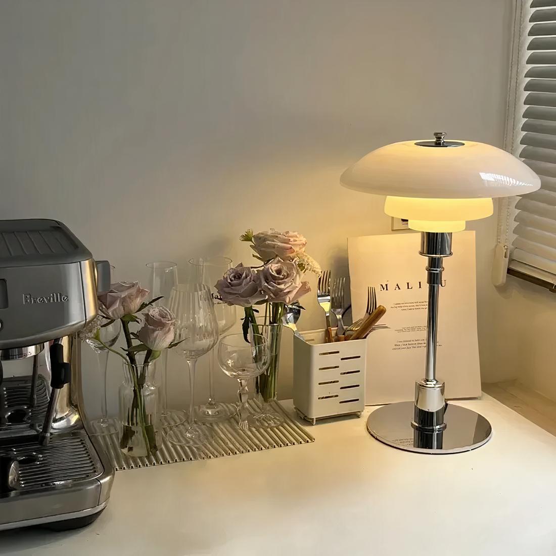 Le verre de haute qualité diffuse une lumière douce et chaleureuse, invitant à la détente et au bien-être. Son design n'est pas seulement esthétique, mais aussi fonctionnel, facilitant l'intégration dans de petits espaces ou sur des tables de nuit encombrées.