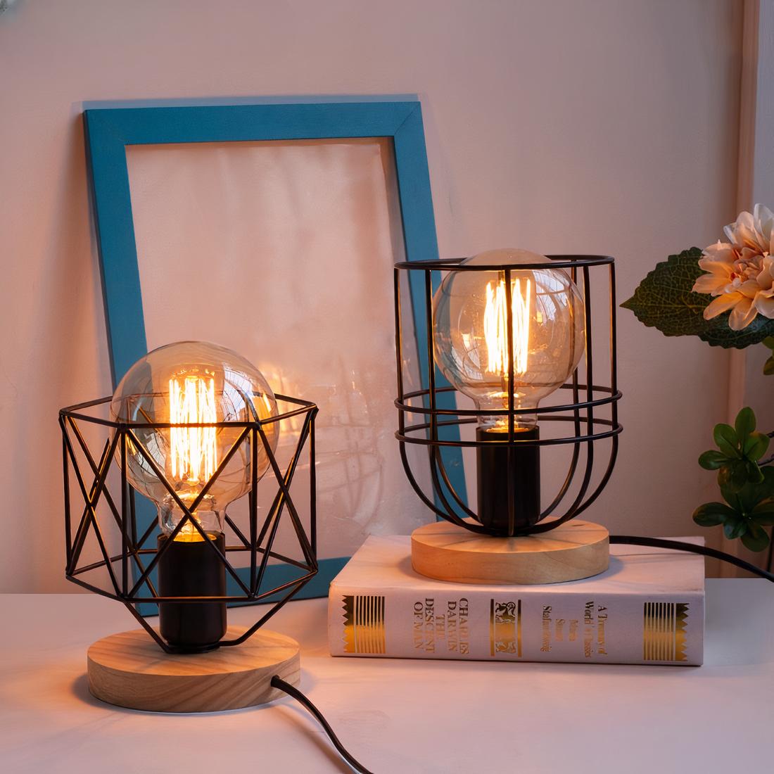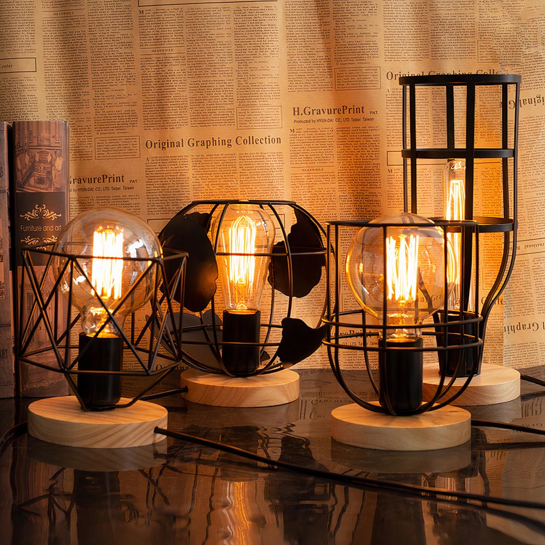 Découvrez cette lampe de chevet avec un socle en bois. C'est un élément de décoration parfait pour apporter une touche tendance et originale à votre intérieur. Son design unique se distingue par une grille noire qui entoure l'ampoule, apportant ainsi un effet industriel à l'ensemble.