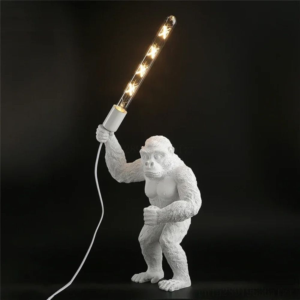 Ne laissez plus votre éclairage être banal ! Grâce à cette lampe au style affirmé, vous apportez une touche d'originalité à votre décoration. Le gorille, fier et imposant, tient dans sa main une douille prête à accueillir des ampoules aux filaments décoratifs qui viendront créer une atmosphère unique.