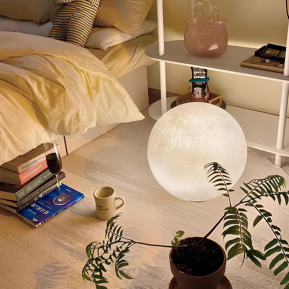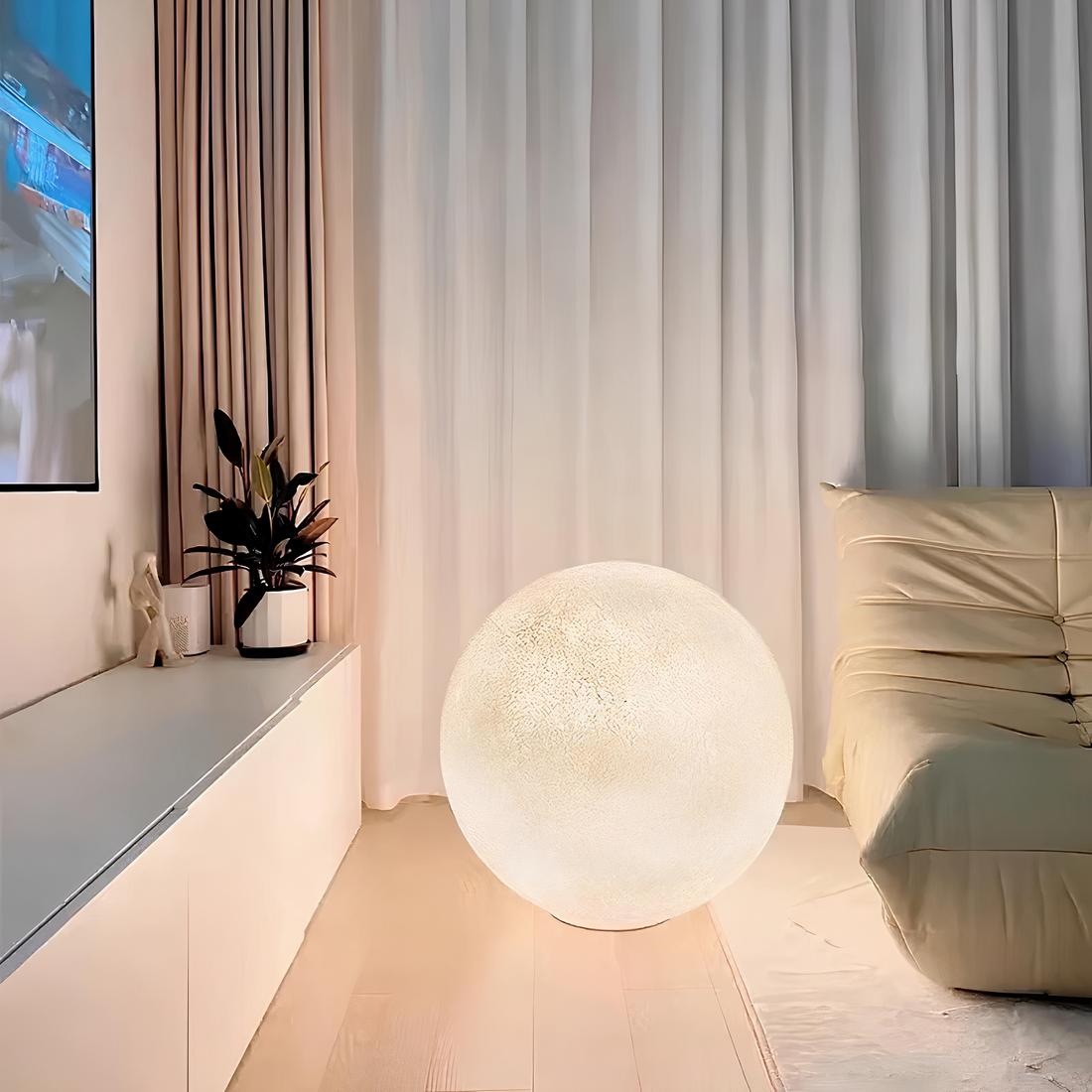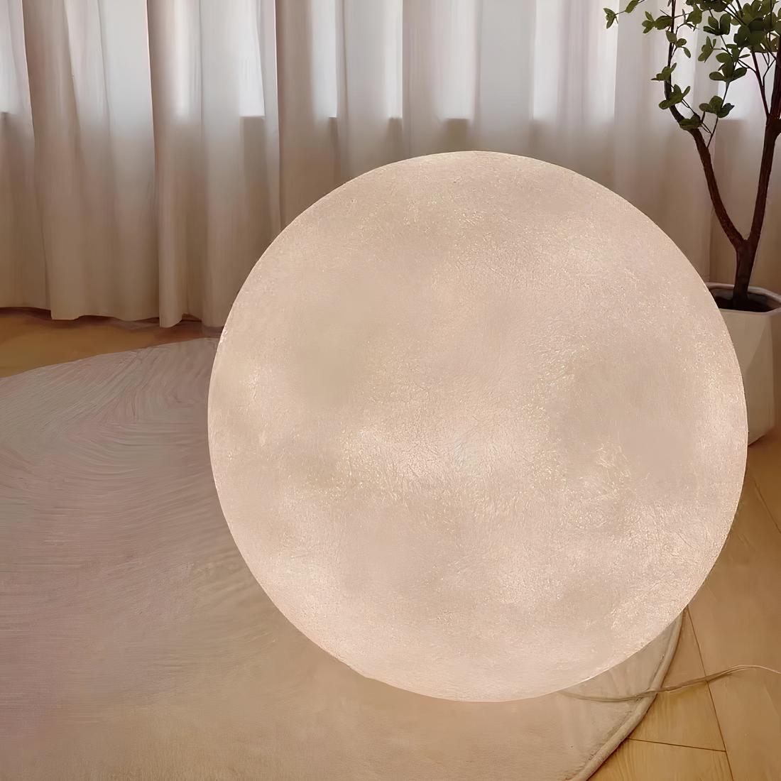 Plongez dans une ambiance onirique avec notre lampe de chevet grand format en forme de lune. Son design imposant permet de la poser aussi bien sur une table de nuit que directement au sol, ajoutant une touche enchanteresse à n'importe quelle pièce.