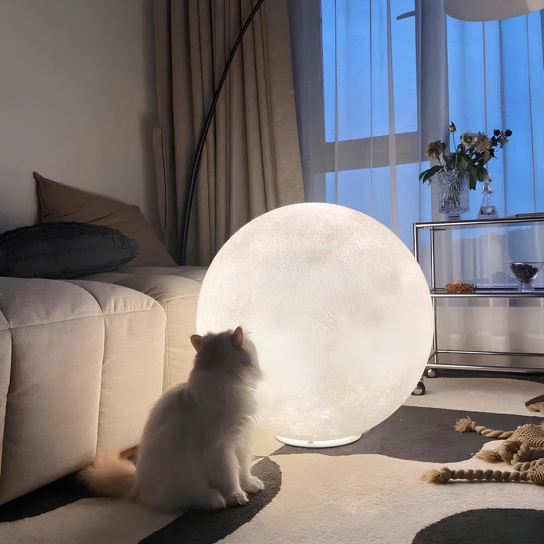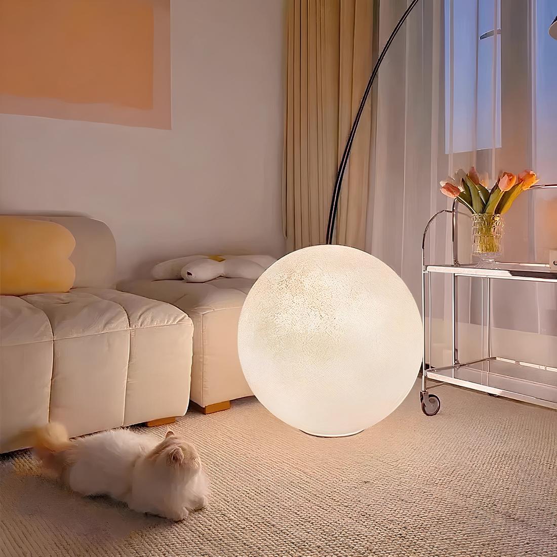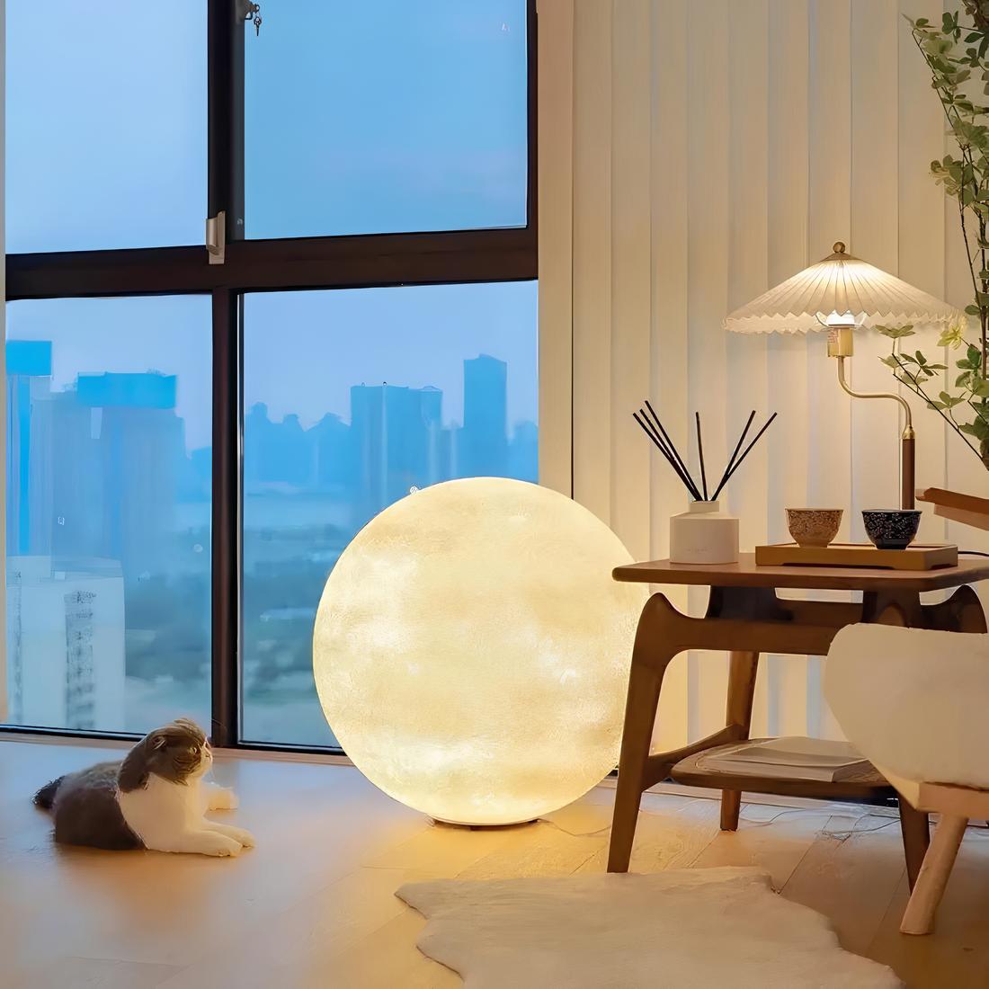 Plongez dans une ambiance onirique avec notre lampe de chevet grand format en forme de lune. Son design imposant permet de la poser aussi bien sur une table de nuit que directement au sol, ajoutant une touche enchanteresse à n'importe quelle pièce.