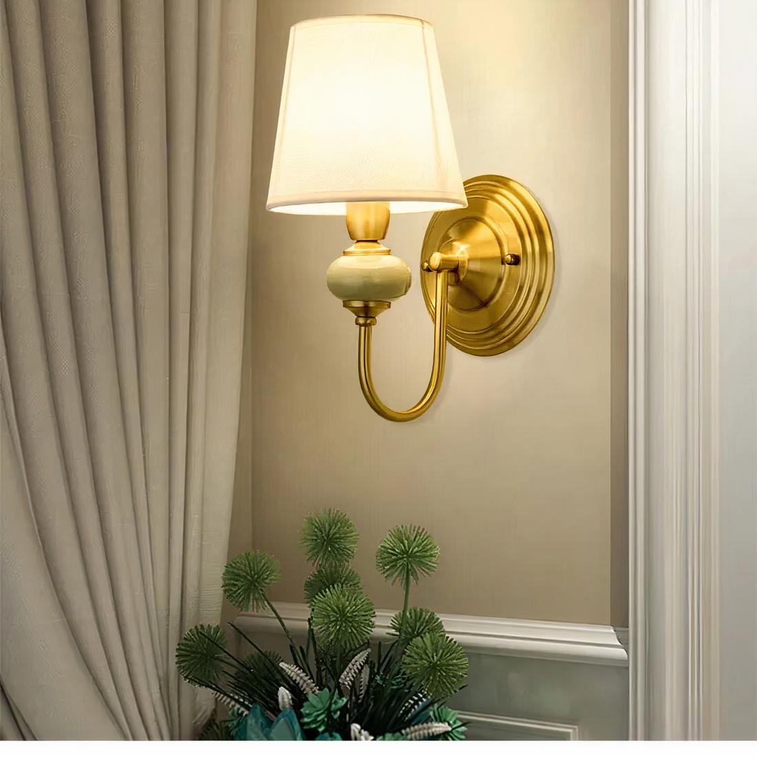 L'abat-jour en tissu apporte une ambiance douce et tamisée, évoquant le charme des appliques d'antan tout en diffusant une lumière naturelle idéale pour vos moments de lecture ou de détente dans votre chambre à coucher.