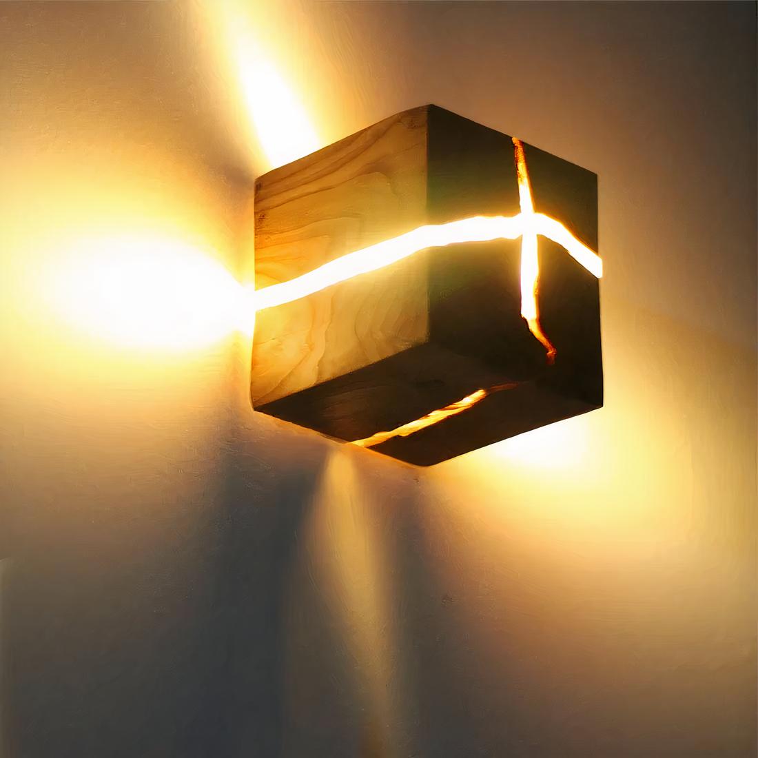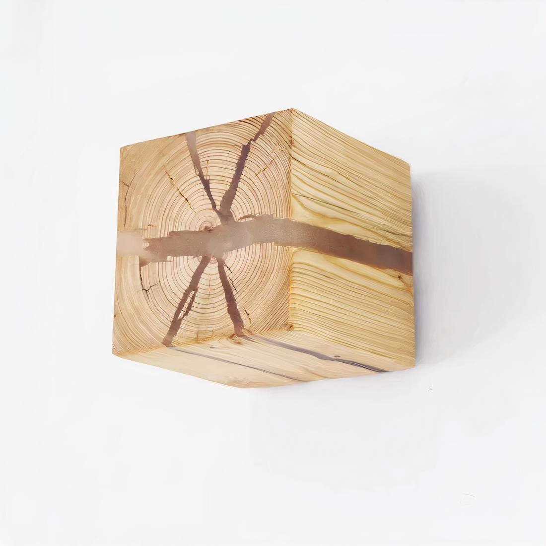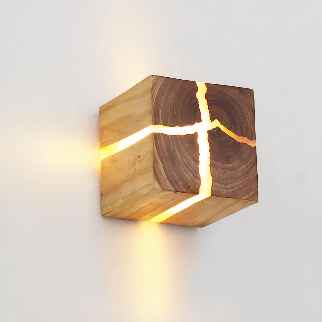 Lampe de chevet bois murale en cube