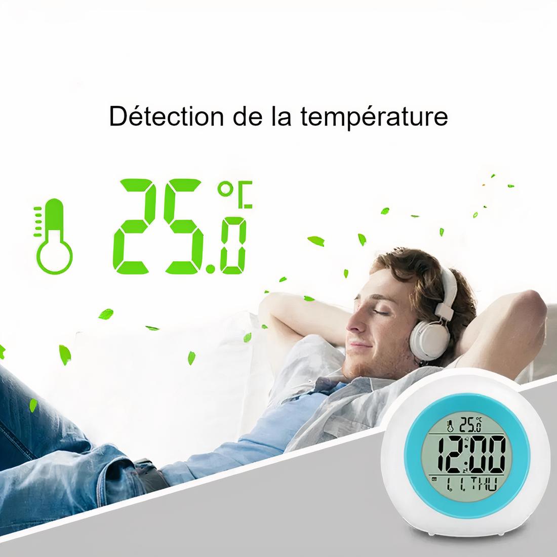 Ce charmant réveil offre bien plus qu'une simple fonctionnalité d'alarme. Sa lumière diffuse et non invasive permet de lire sans déranger votre partenaire endormi. Avec ses multiples couleurs de lumière, créez des ambiances adaptées à votre humeur.