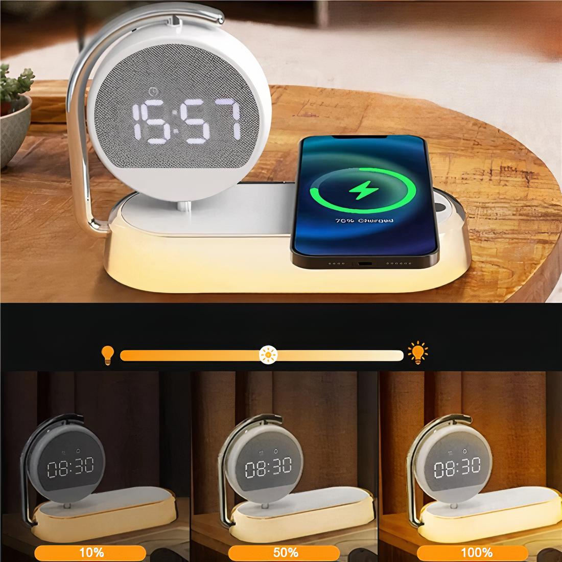 Découvrez notre lampe de chevet sans fil 3 en 1, un indispensable pour votre espace de repos. Cette lampe polyvalente combine les fonctionnalités d'un réveil, d'une lampe et d'un chargeur de téléphone, offrant ainsi une solution complète pour répondre à tous vos besoins.