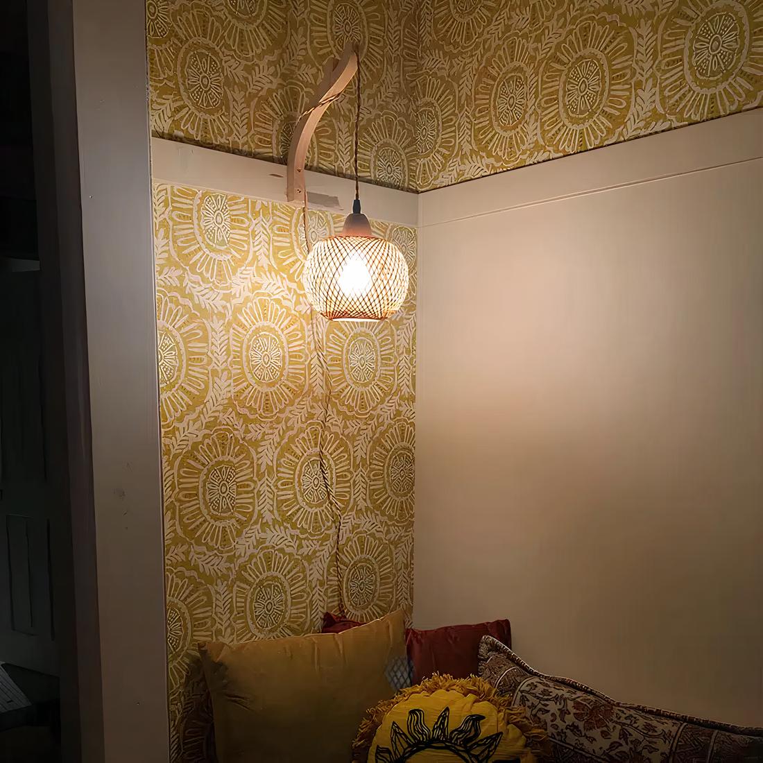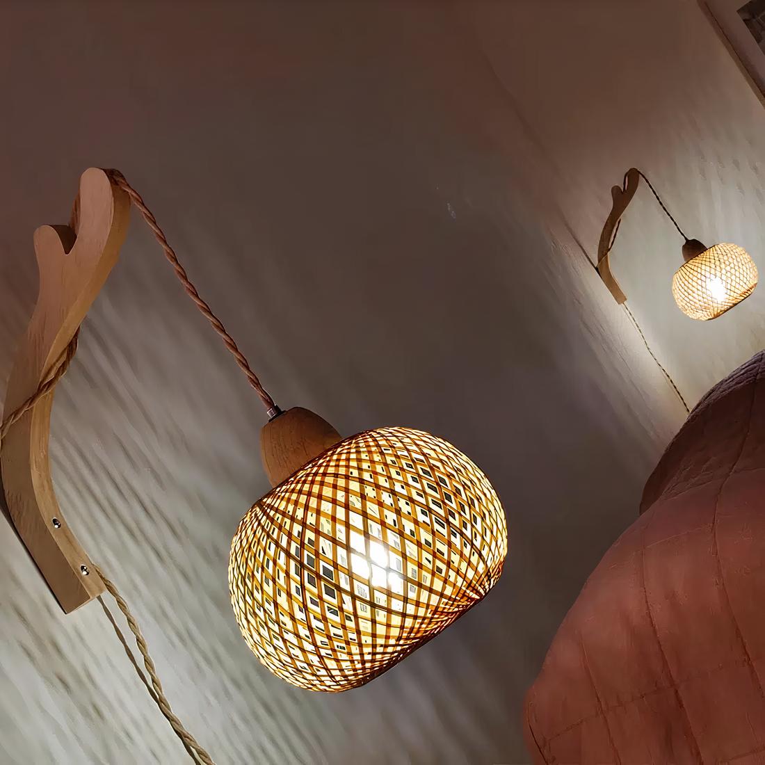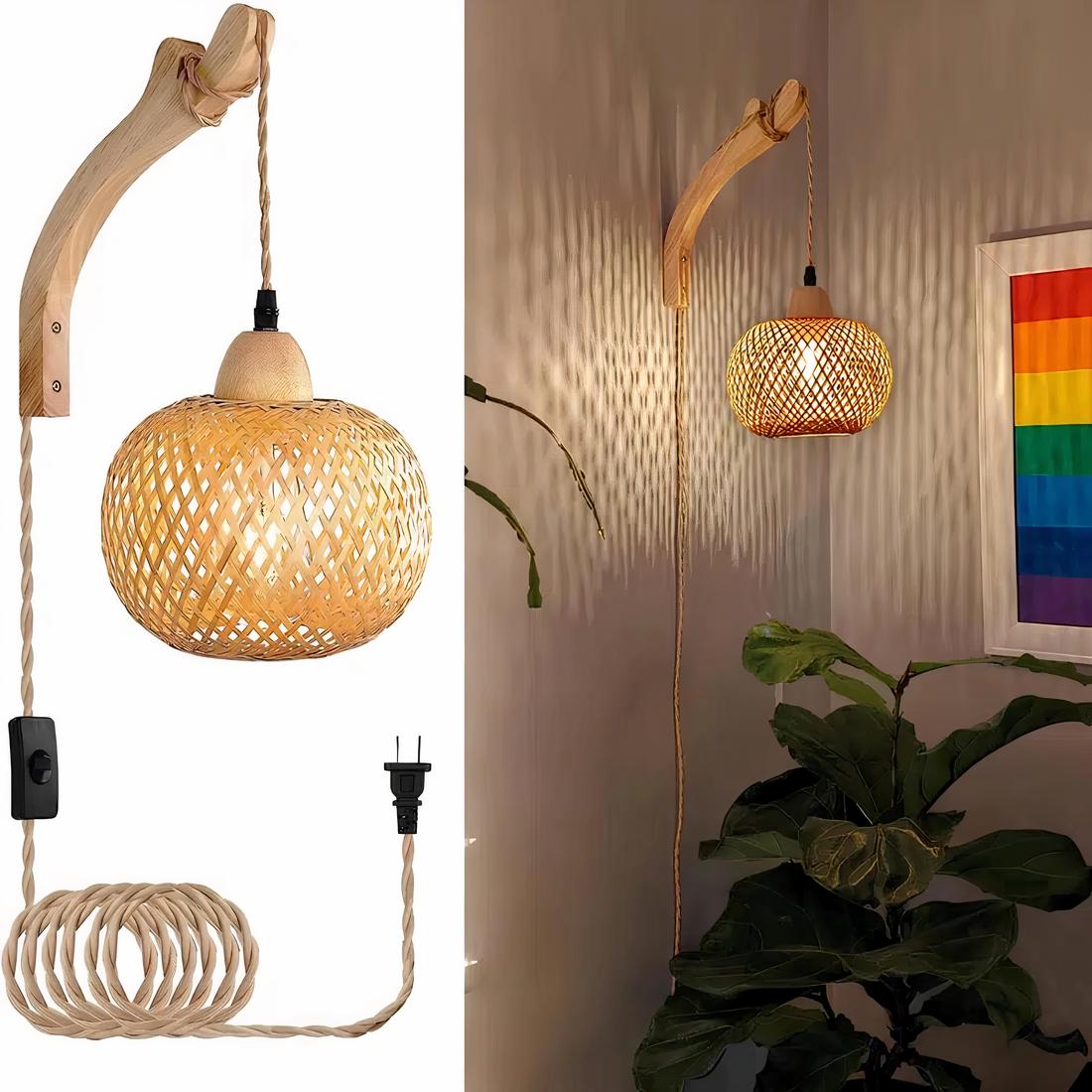 Apportez une touche bohème à votre chambre avec notre lampe de chevet murale suspendue en rotin. Ce luminaire, tissé avec des matériaux naturels, évoque une atmosphère de tranquillité et d'évasion.