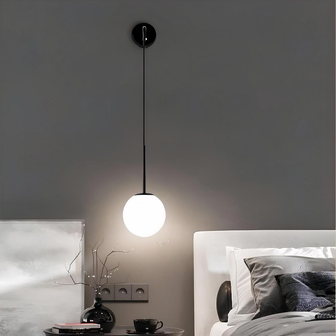 Lampe de chevet suspendue avec boule en verre