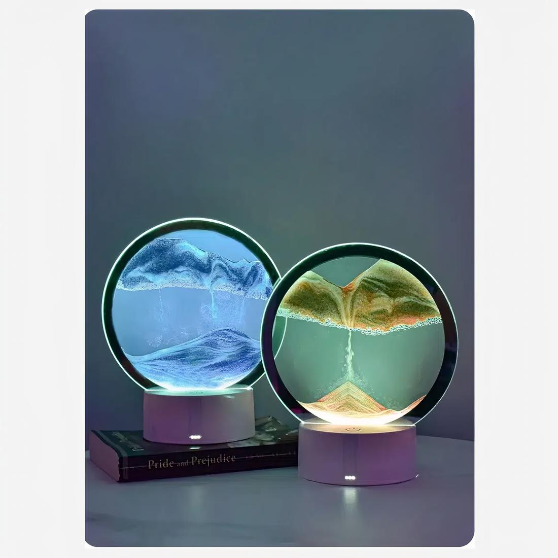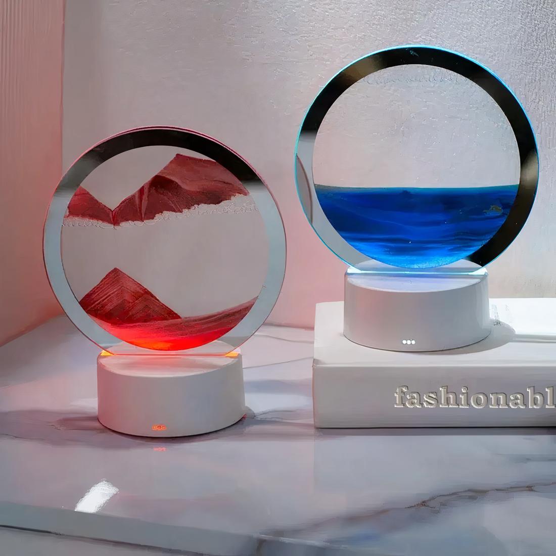 Cette superbe lampe tactile incarne un sablier perpétuel moderne, captivant par l'écoulement incessant de sable coloré entre deux plaques de verre. Inspirée par la tranquillité des jardins japonais et la constance hypnotique du pendule de Newton, elle crée une ambiance apaisante et relaxante.