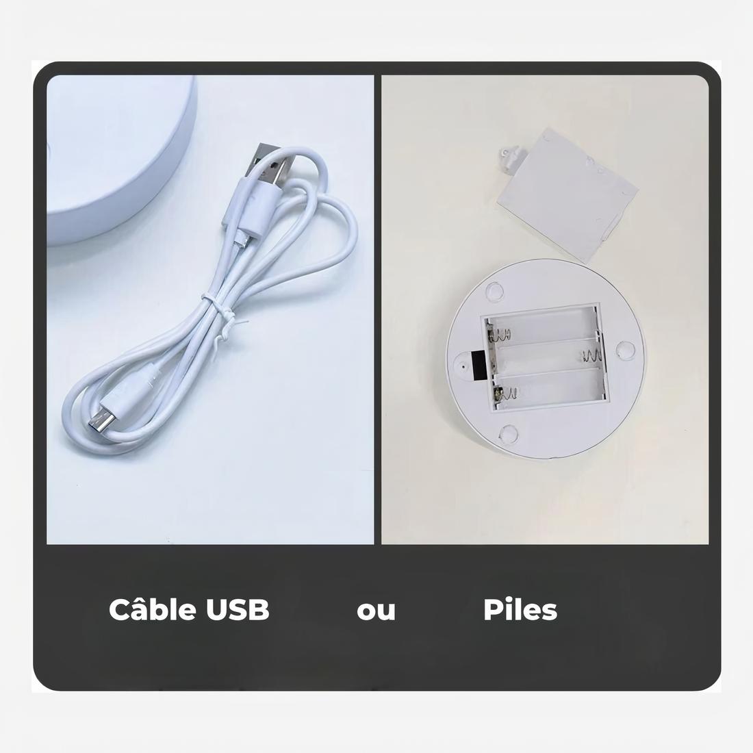 Sa polyvalence se reflète également dans ses options d'alimentation : câble USB ou piles, offrant une portabilité inégalée. Vous pouvez ainsi l'emporter partout dans la maison, pour bénéficier de ses effets relaxants où que vous soyez.