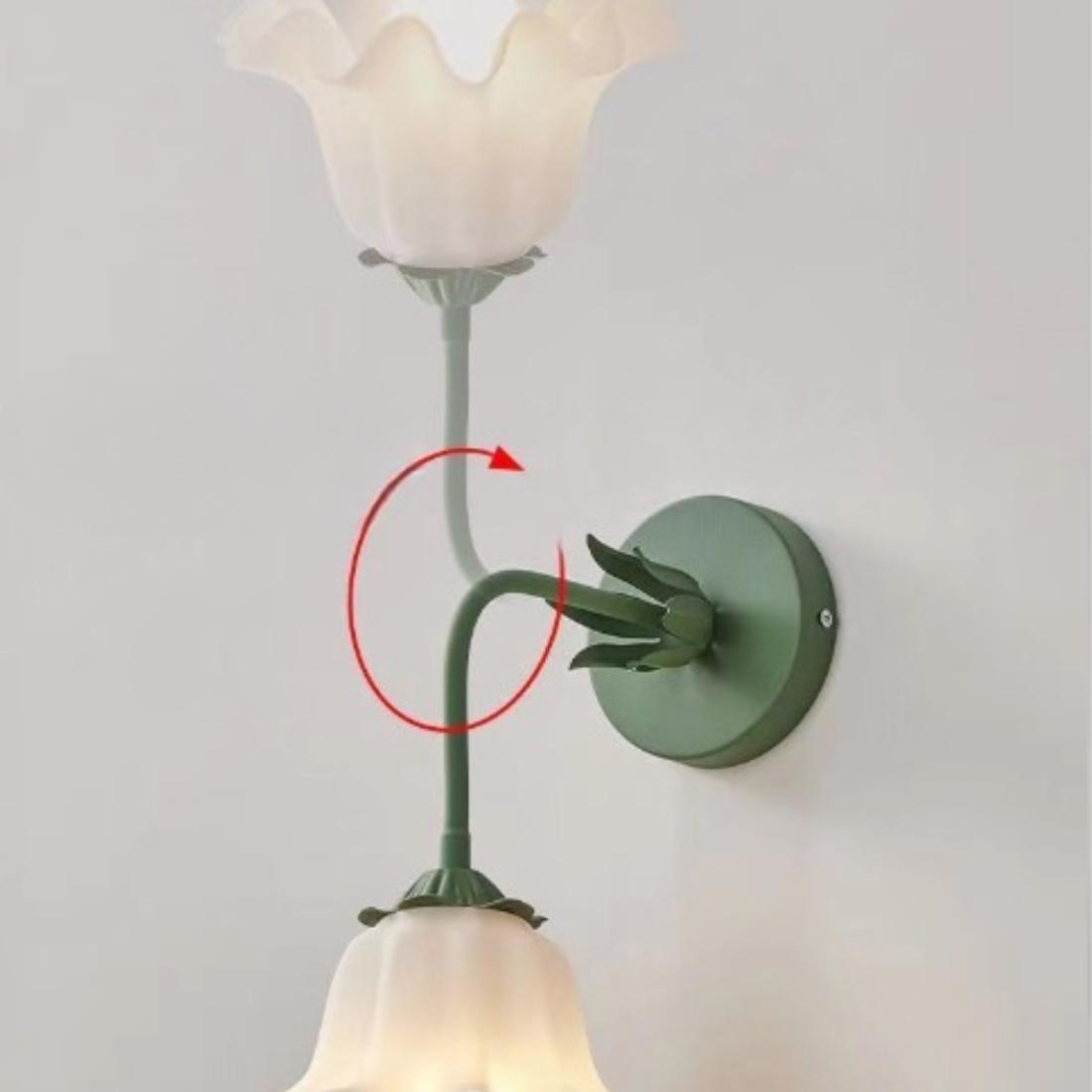 Lampe de chevet vintage murale avec abat-jour en verre fleuri