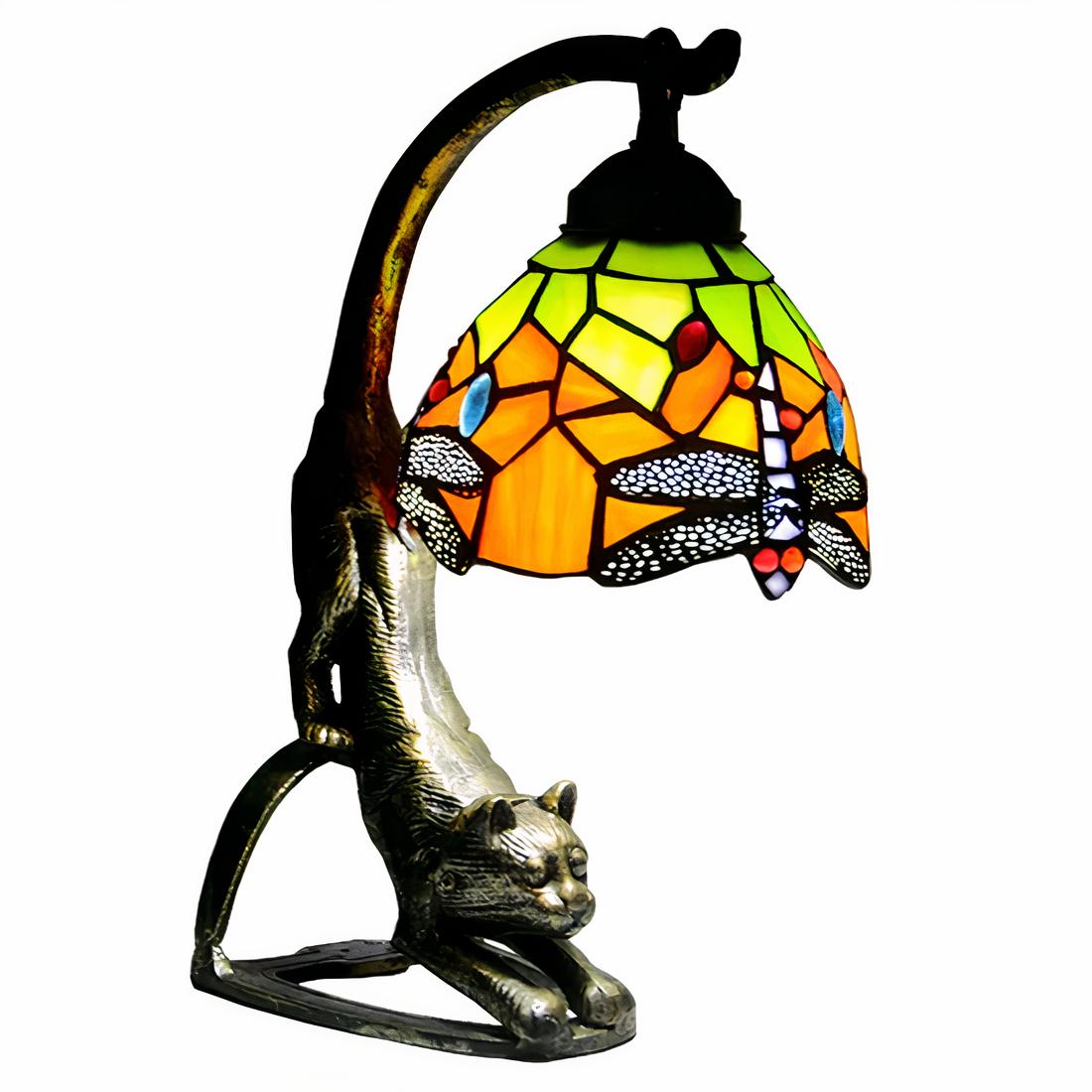 Lampe de chevet style Tiffany en forme de chat