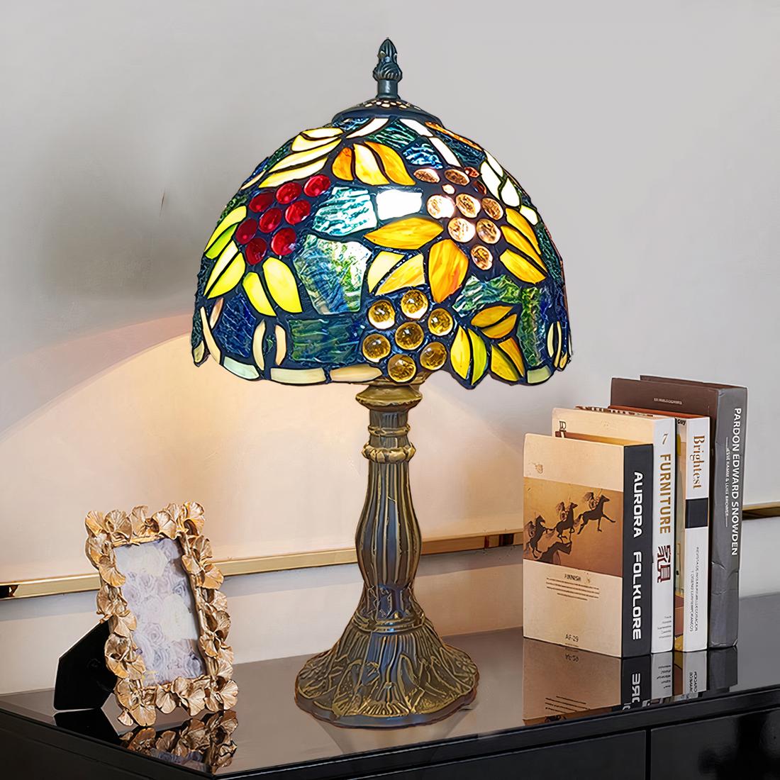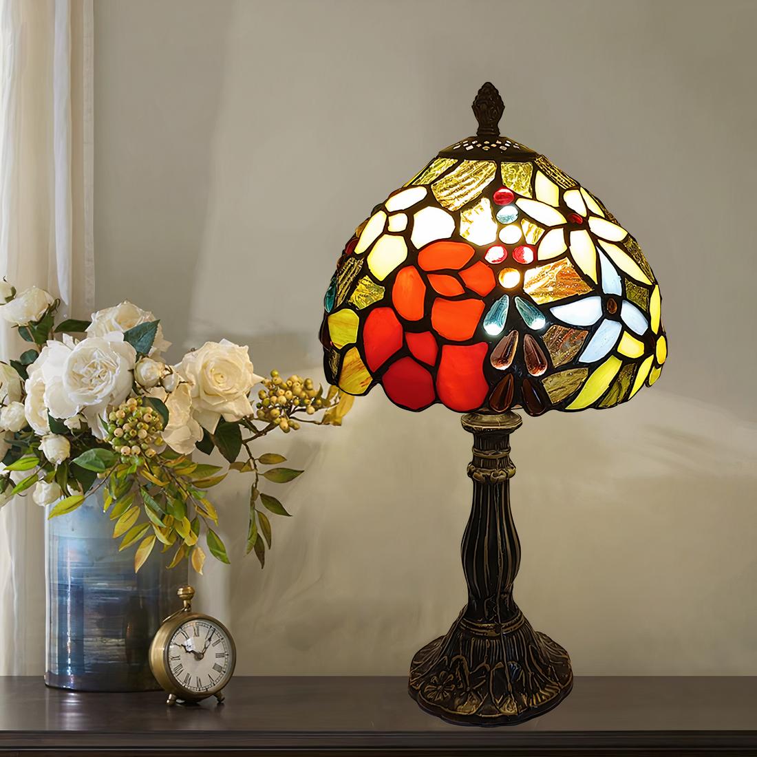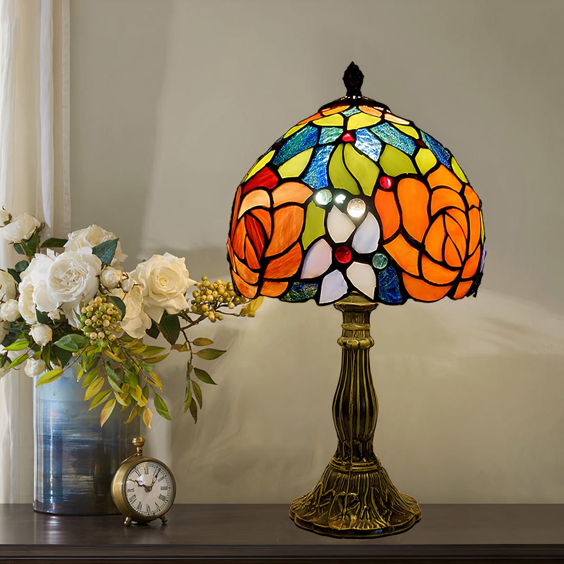 Lampe de chevet vintage avec vitrail fleuri style Tiffany